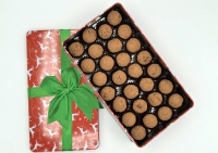Red velvet filling atop a crunchy Oreo cookie crust, topped with creamy cheesecake and finished with a decadent chocolate ganache